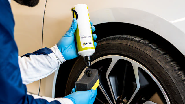 Achieve deep, long-lasting black shine on your tires with our Black Tyre Gel. It's also perfect for revitalizing non-painted plastic parts. This water-based, silicone-free formula ensures a brilliant finish. For easy application, use our Black Tyre Gel Applicator Sponge (BTS 12).