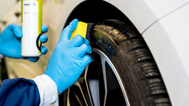 - Use BTS 12 applicator sponge which has an ideal curve for use on tires.