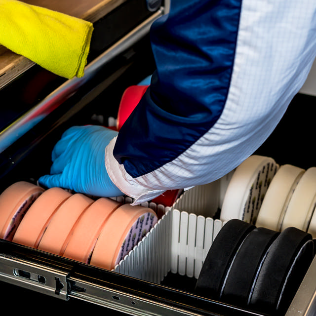 The principle of fine sanding and polishing is the same. We start with a coarse grain to remove material and uneven edges on the surface and then switch to a finer grain, to make the scratches finer (read: smaller and closer together). This results in a flat and more even surface.