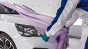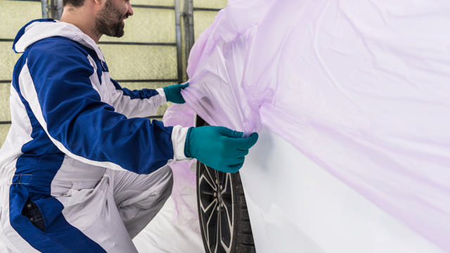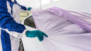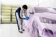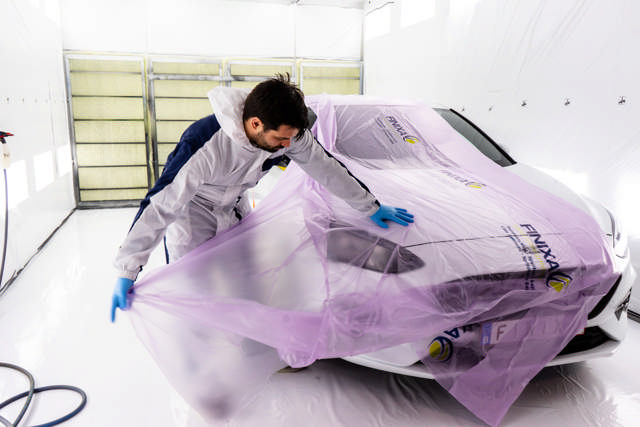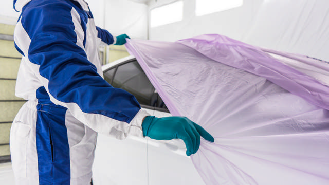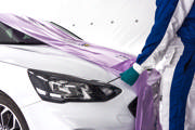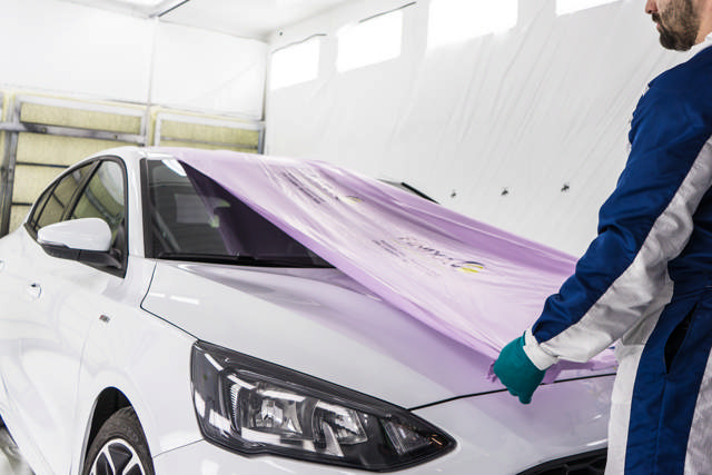 • The lilac transparent masking film is not only a good static masking film that holds paint on the exterior of the film, it also has a special layer on the inside of the film that absorbs humidity from the car. This avoids white spots after s