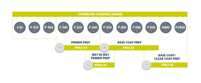 Once the surface is shaped, PPAS takes over—an advanced multi-grit disc that integrates several sanding steps into one. Cuts like a coarse grit, finishes like a finer one! The pressure distributing foam backing allows PPAS to remove scratches, refine textures, and deliver a smooth, paint-ready finish in a single pass.