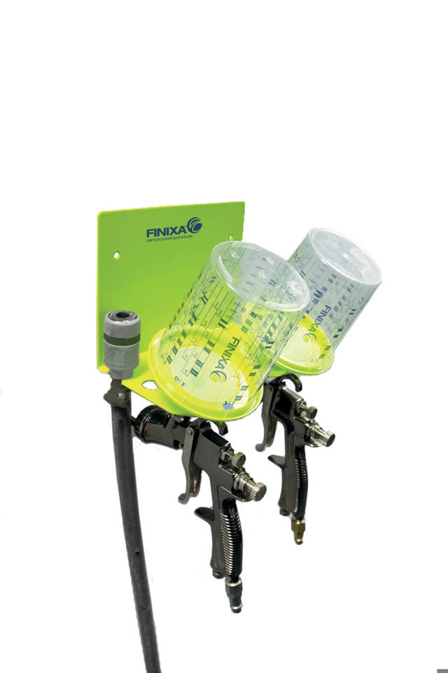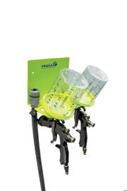 This support features a powerful magnet that can securely hold 2 filled spray guns. It's easy to replace and helps keep your airlines clean and off the floor, making your workspace more organized and efficient.