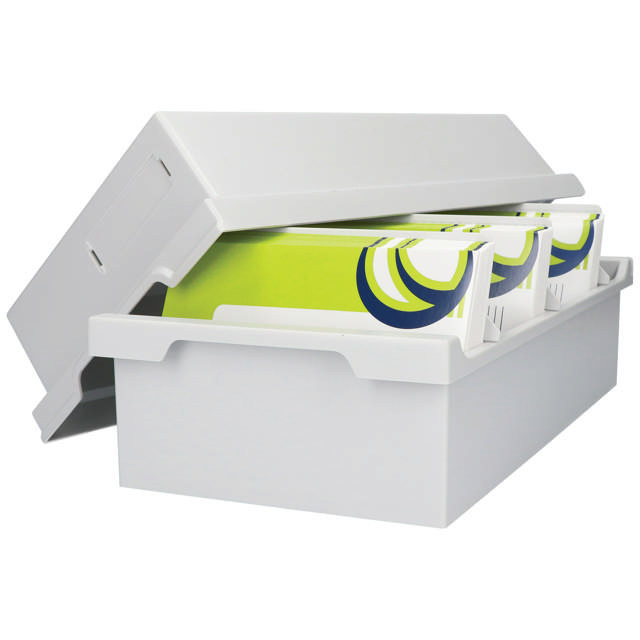 - • System carries one plastic filing box with 6 adjustable dividers, 88 blank labels and a marker to make notes on the back of the plates.