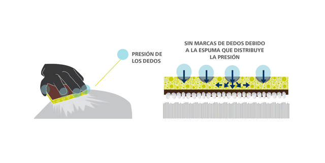 - Sin riesgo de lijar en exceso gracias a la presión homogénea ejercida por la esponja