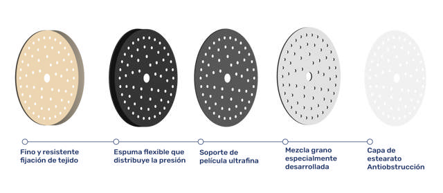 La capa de espuma múltiple del disco PPAS amortigua la presión para lograr un lijado más suave y uniforme.